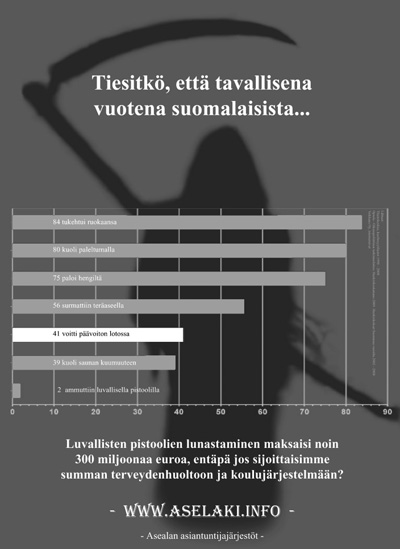 ETUSIVU UUSI ASELAKI TIEDOTTEET UUTISET JA LINKIT LAUSUNNOT JÄRJESTÖT TILASTOT ARKISTO EUROVAALIT 2014 PRESIDENTINVAALIT 2012 EDUSKUNTAVAALIT 2011 MITEN HAKEA ASELUPAA | ||||||
